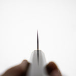 Japanese SG2, also known as R2 steel, is a high-end, powdered metallurgy stainless steel and one of the finest knife-making steels available in Japan. It is a favourite of many for its exceptional hardness and edge retention. Its fine, uniform grain structure enables razor-sharp edges, all the while holding an edge for much longer than Carbon steel knives, without needing to be concerned about rust appearing.