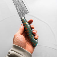 Nigara Hamono are truly some of the most experienced knifemakers in Japan. Now on their 8th generation of blacksmiths, they are masters at stainless damascus forging and heat treatment. The Anmon Damascus we have available have a matte finish and are polished underneath, resulting in a brilliant visual contrast.