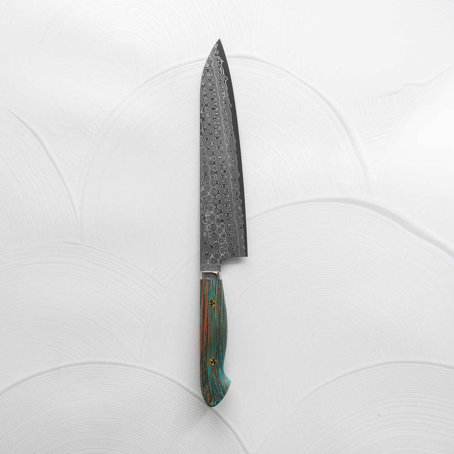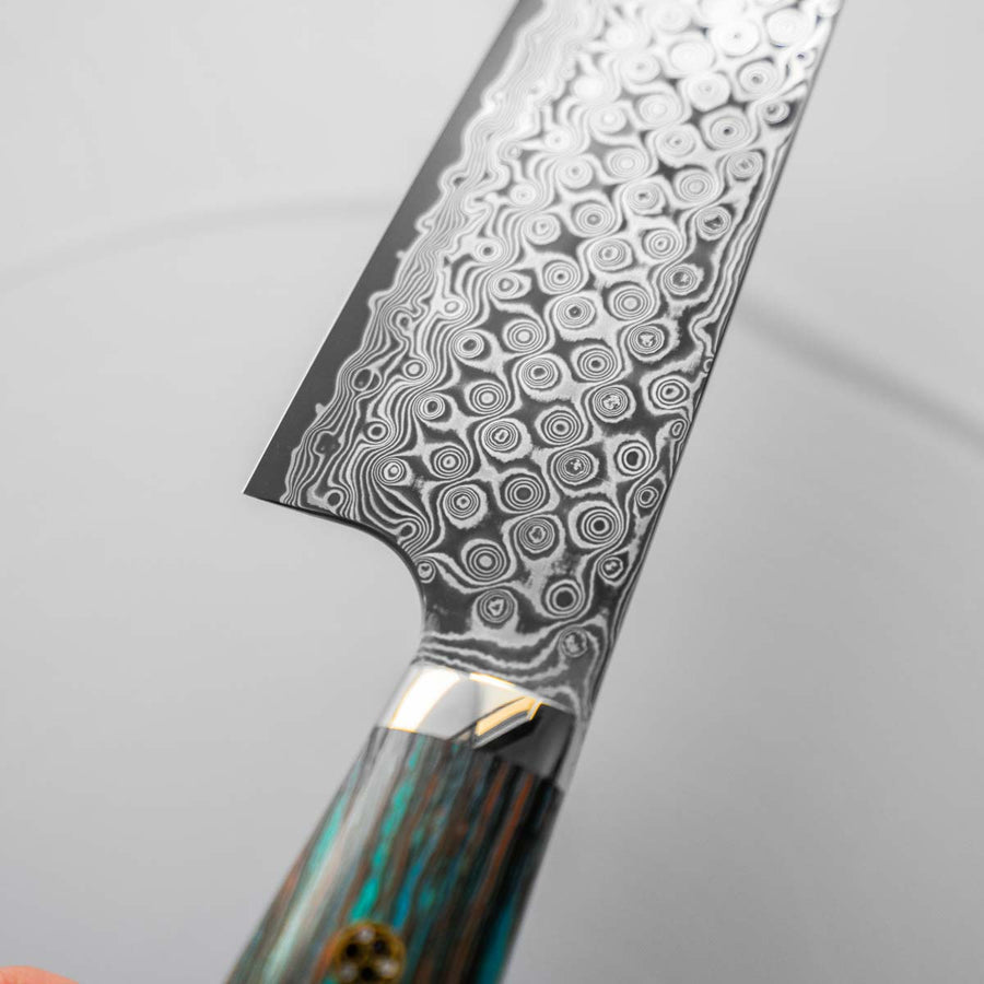 Nigara Hamono SG2 Raindrop Damascus Gyuto 240mm - Turquoise