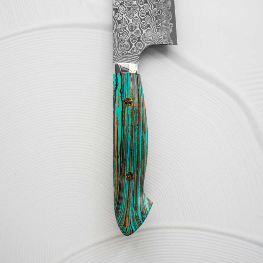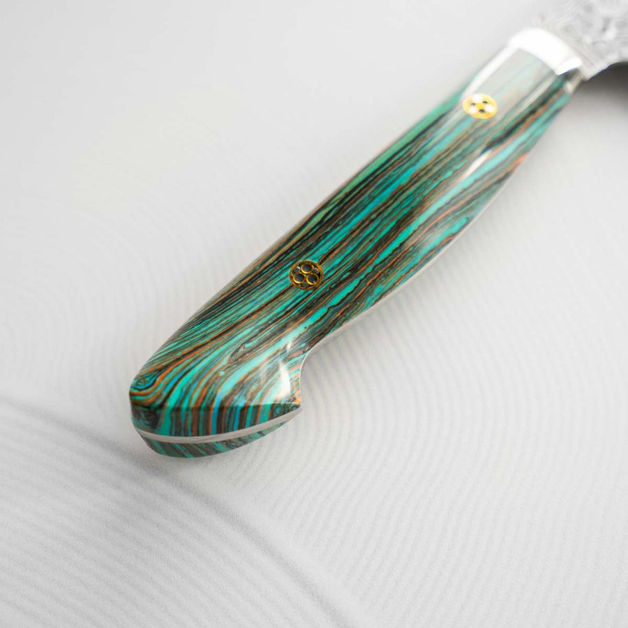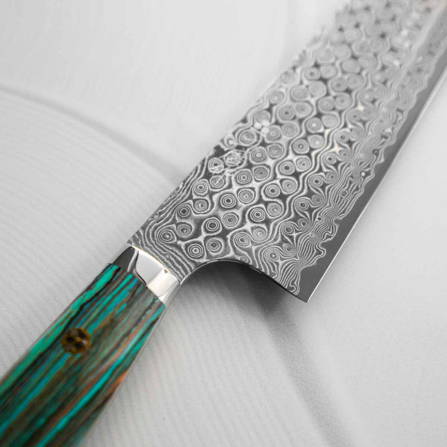 Nigara Hamono SG2 Raindrop Damascus Kiritsuke 240mm - Turquoise