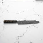 Japanese SG2, also known as R2 steel, is a high-end, powdered metallurgy stainless steel and one of the finest knife-making steels available in Japan. It is a favourite of many for its exceptional hardness and edge retention. Its fine, uniform grain structure enables razor-sharp edges, all the while holding an edge for much longer than Carbon steel knives, without needing to be concerned about rust appearing.
