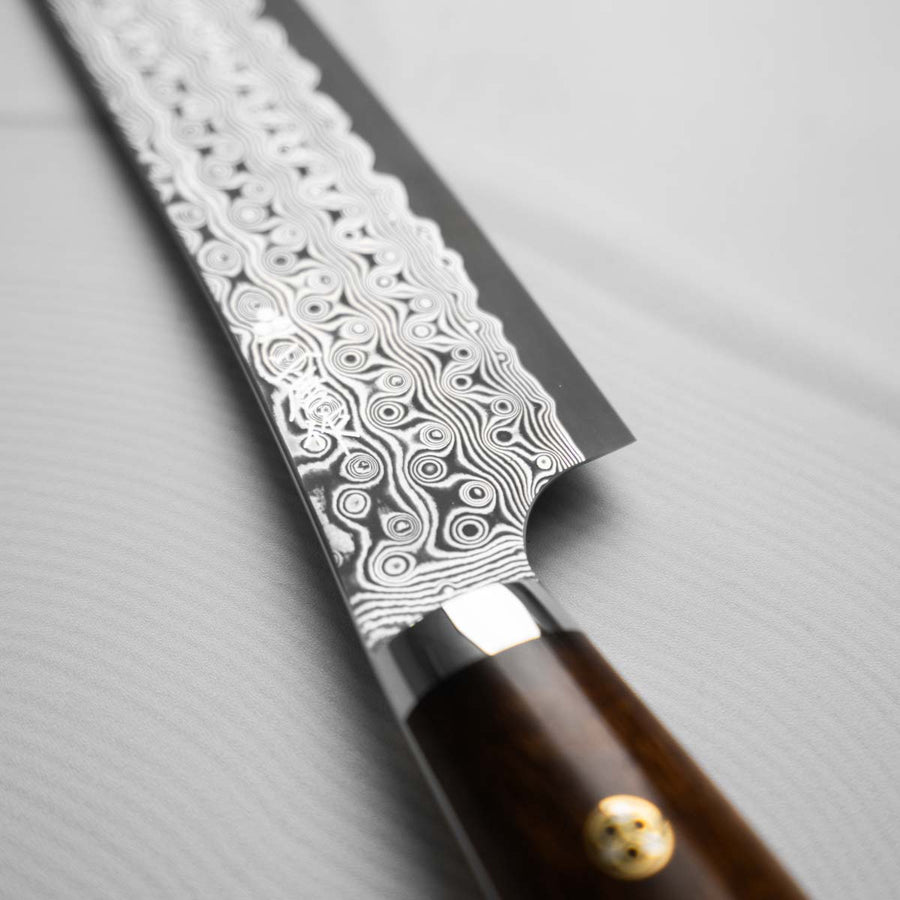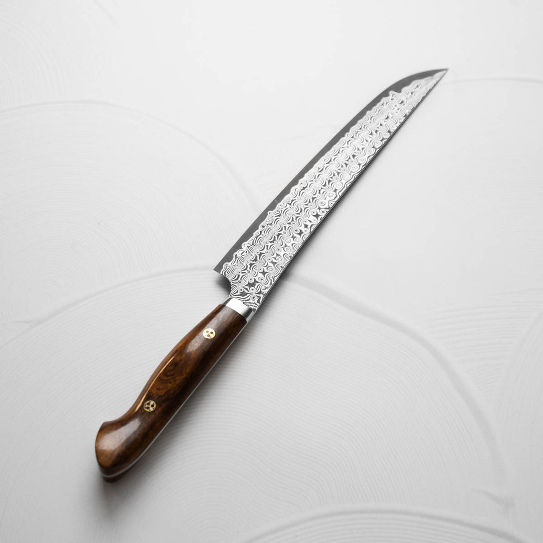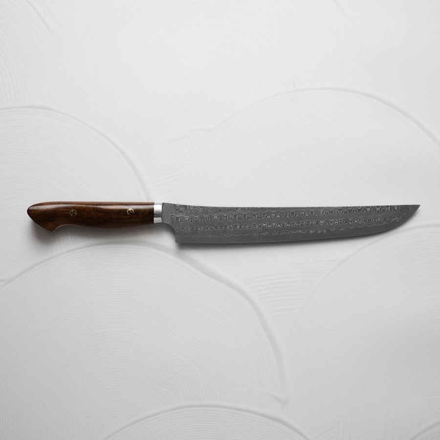 Nigara Hamono SG2 Raindrop Damascus Sakimaru Sujihiki 270mm - Desert Ironwood