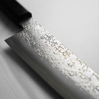 The Bunka knife, a versatile and traditional Japanese kitchen tool, features a distinctive, angular tip and a wide blade. It's designed for precision tasks like slicing, dicing, and chopping. Ideal for handling vegetables, meat, and fish, the Bunka is a multifunctional knife celebrated for its utility and unique aesthetic.