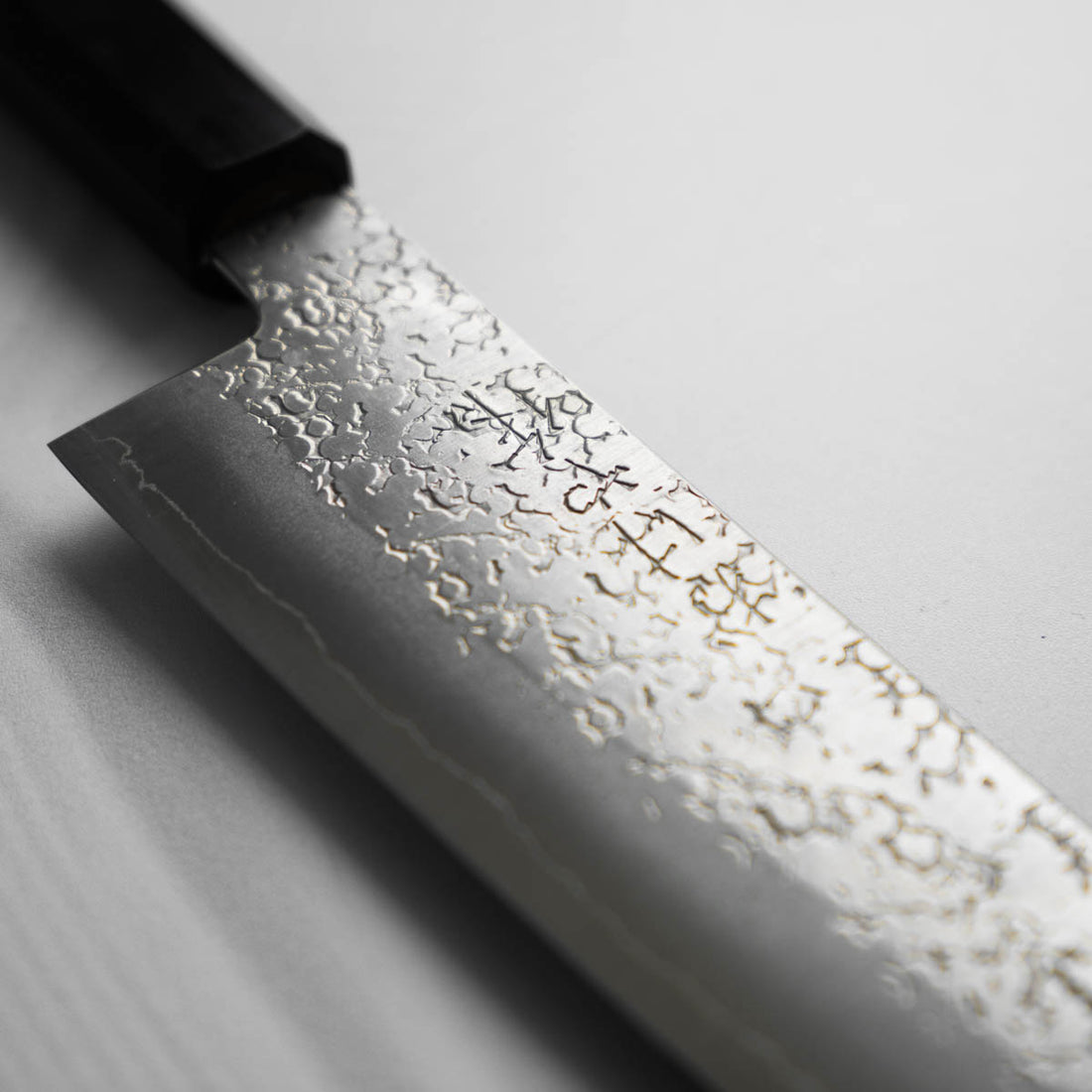 Japanese Ginsan steel, also known as Silver-3 or G3, is an underrated high-grade semi-stainless steel loved by many for being in the ‘goldilocks zone’ of knife steels. It holds a very respectable edge, but is effortless to sharpen. It is considered the semi-stainless version of White 2. It is the knife steel of choice for many home cooks and professional chefs alike.