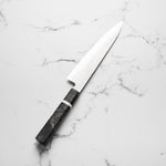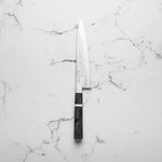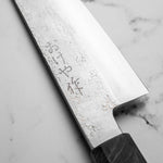 Japanese Ginsan steel, also known as Silver-3 or G3, is an underrated high-grade semi-stainless steel loved by many for being in the ‘goldilocks zone’ of knife steels. It holds a very respectable edge, but is effortless to sharpen. It is considered the semi-stainless version of White 2. It is the knife steel of choice for many home cooks and professional chefs alike.