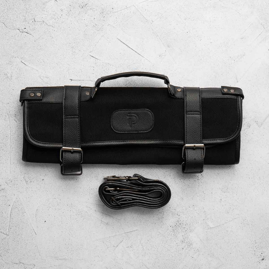Embark on your culinary journey with the advanced protection of our unique knife roll. Created for both master chefs and aspiring cooks, this roll is distinguished by its practical roll-up design accompanied by nine specialized compartments for knives and tools.