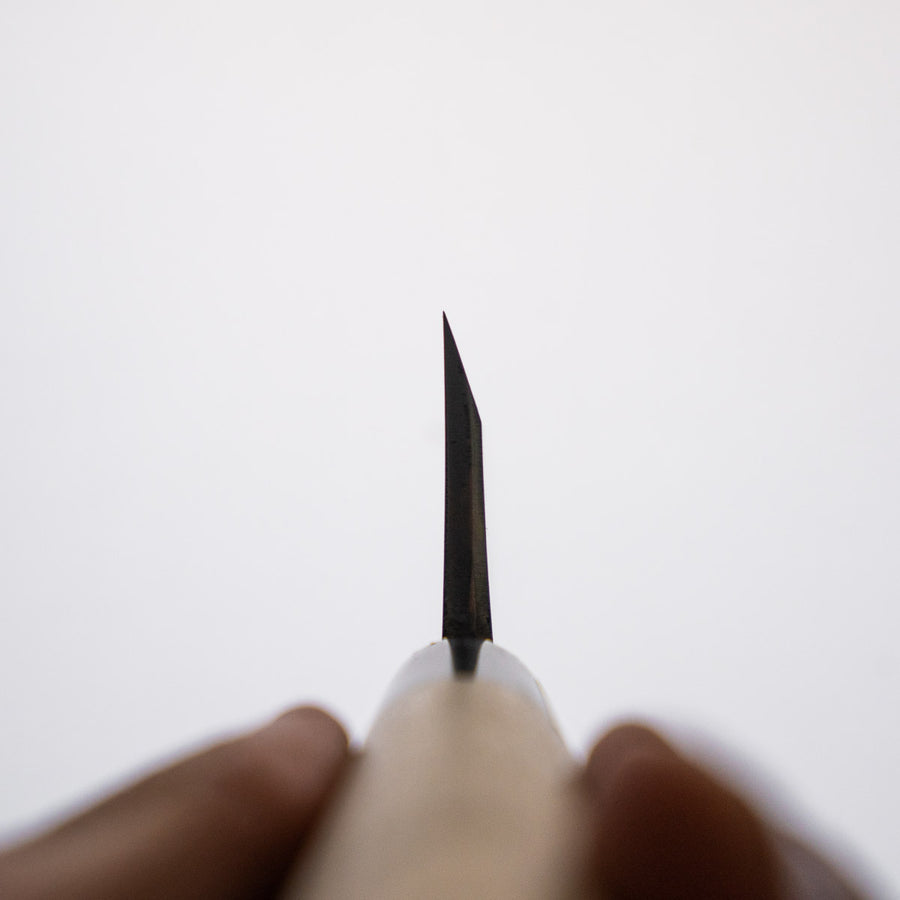 Japanese White Steel #3, a traditional high-carbon steel, is cherished for its purity and fine grain structure, enabling razor-sharp edges, at the cost of being reactive. It is one of the easiest steels to sharpen, but cannot be left wet for even short periods otherwise rust spots can occur. If you’re fastidious in your knife maintenance, this knife can steel can be extremely rewarding to use.