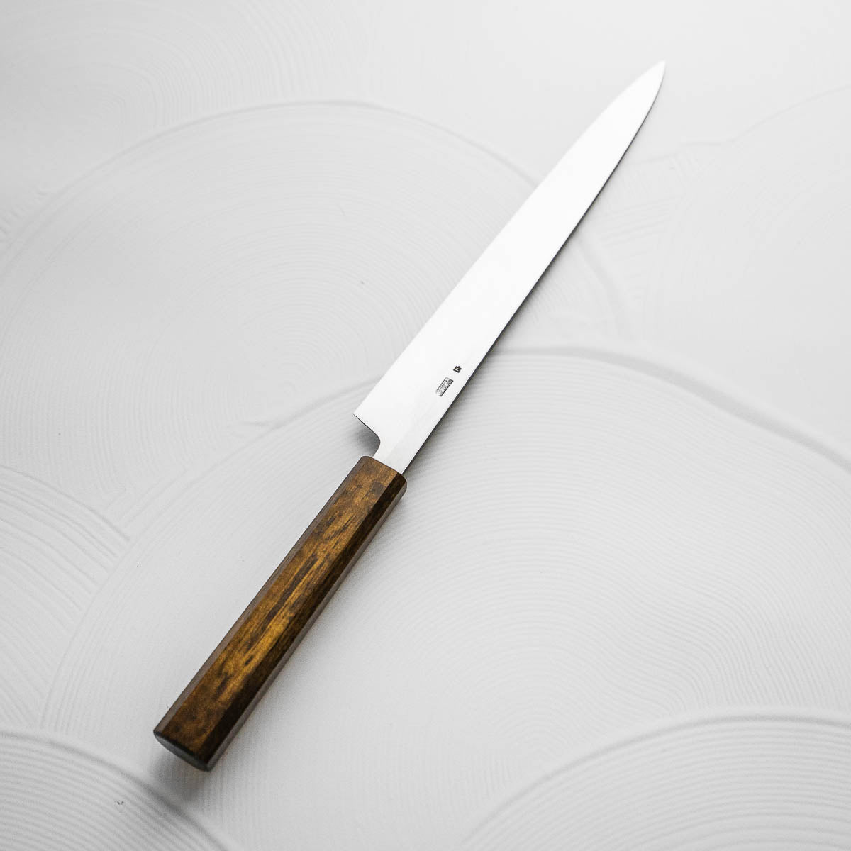 The Yanagiba knife, a staple in traditional Japanese cuisine, is a slender, long-bladed knife primarily used for slicing sashimi and sushi. Its graceful, single-beveled edge guarantees precise, thin cuts, preserving the texture and integrity of the fish. Revered for its sharpness and balance, the Yanagiba is essential for authentic Japanese food preparation.