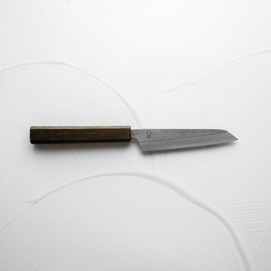 The Petty knife, a quintessential tool in Japanese cuisine, is a smaller utility knife used for precise, delicate tasks. Often considered a smaller sibling to the chef's knife, it excels in hand-held tasks like peeling, trimming, and intricate cutting. Its versatility makes it an essential for detailed culinary work.