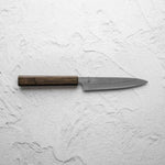 The Petty knife, a quintessential tool in Japanese cuisine, is a smaller utility knife used for precise, delicate tasks. Often considered a smaller sibling to the chef's knife, it excels in hand-held tasks like peeling, trimming, and intricate cutting. Its versatility makes it an essential for detailed culinary work.