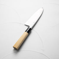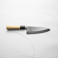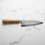 The Deba knife, deeply rooted in Japanese culinary tradition, is a robust, single-bevel knife (sometimes double) primarily designed for fileting fish. Its thick, heavy blade effortlessly glides through fish bones and joints, while preserving delicate flesh. Ideal for seafood preparation, the Deba is a staple in Japanese kitchens for its precision and strength.