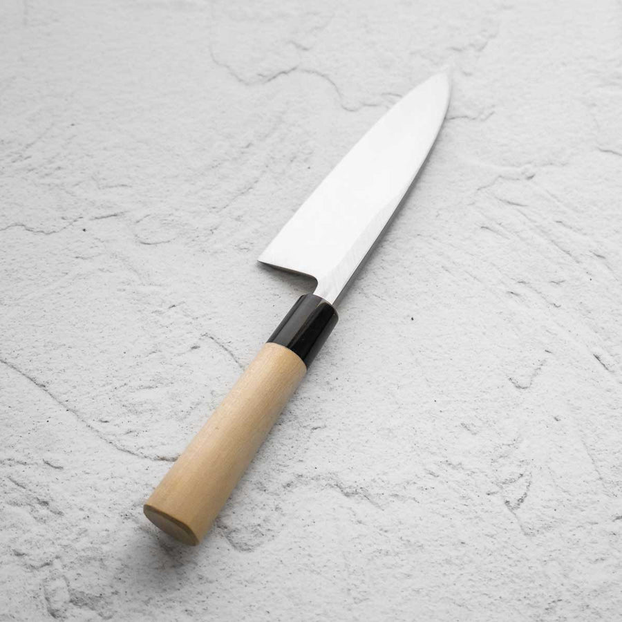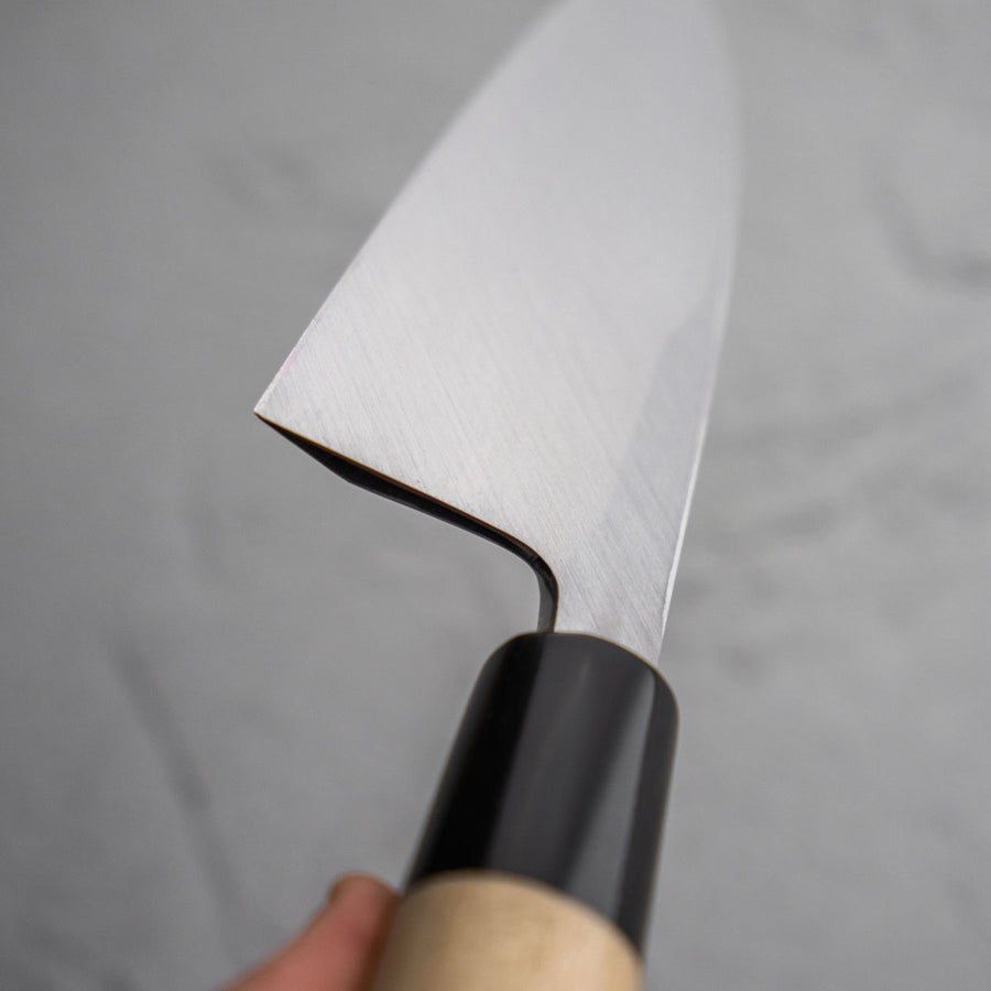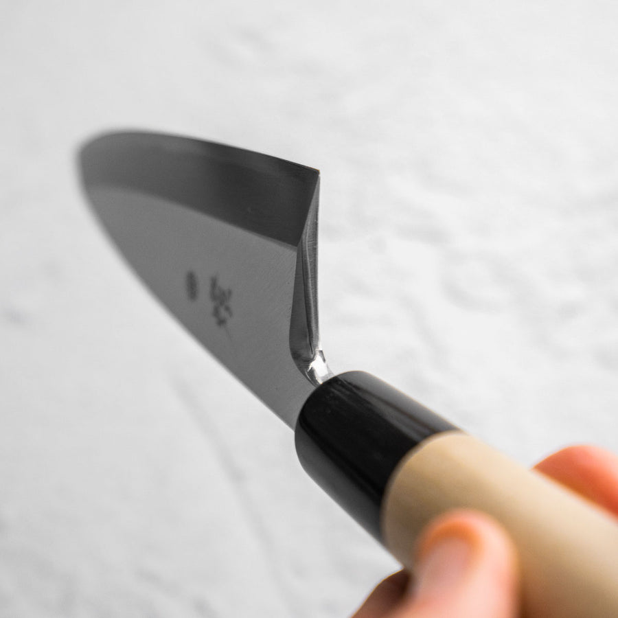 The Deba knife, deeply rooted in Japanese culinary tradition, is a robust, single-bevel knife (sometimes double) primarily designed for fileting fish. Its thick, heavy blade effortlessly glides through fish bones and joints, while preserving delicate flesh. Ideal for seafood preparation, the Deba is a staple in Japanese kitchens for its precision and strength.
