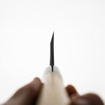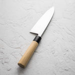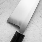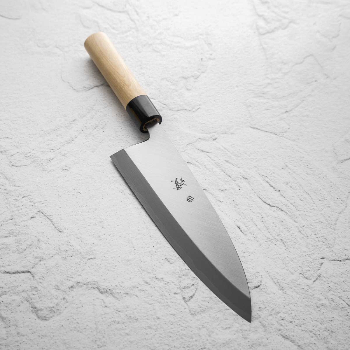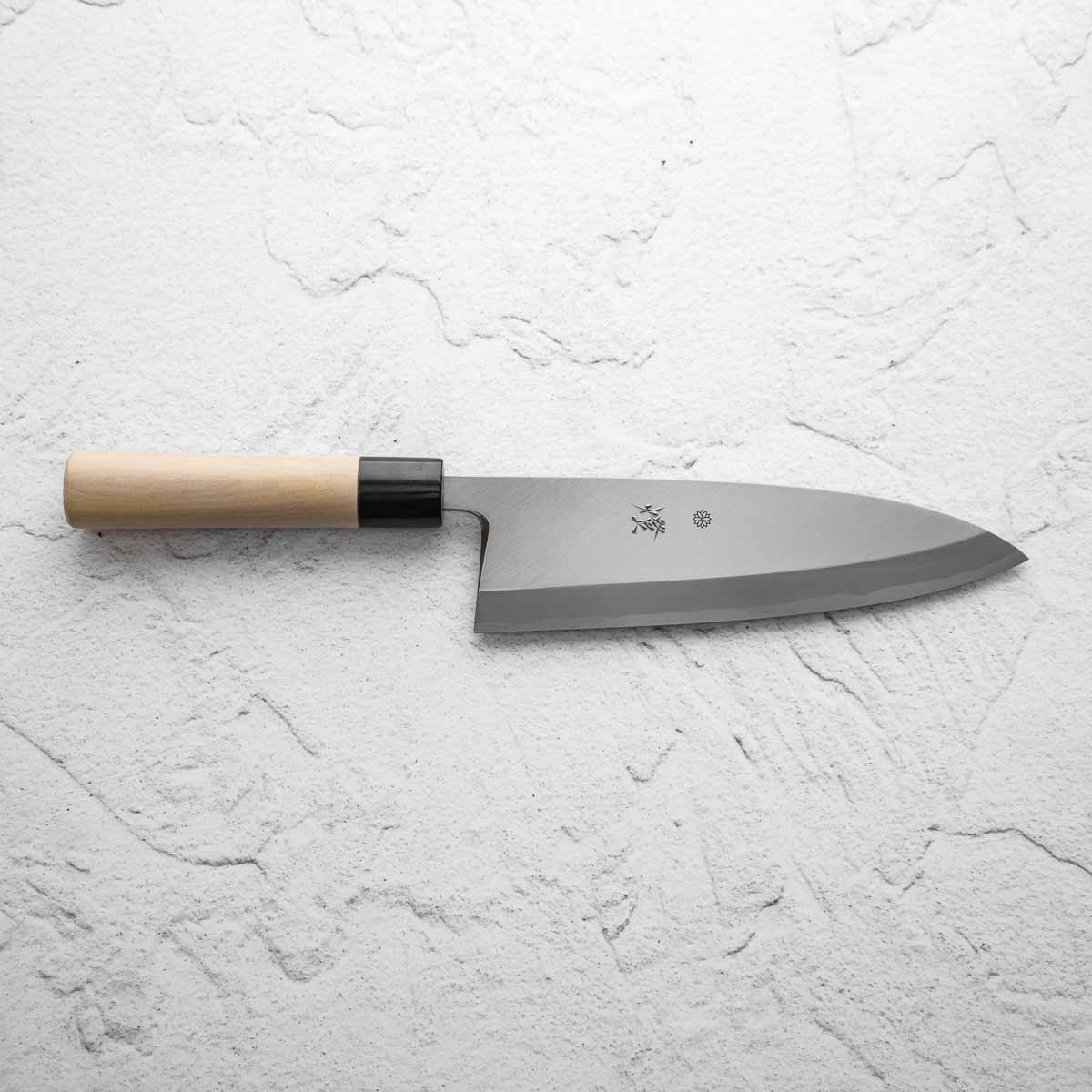 The Deba knife, deeply rooted in Japanese culinary tradition, is a robust, single-bevel knife (sometimes double) primarily designed for fileting fish. Its thick, heavy blade effortlessly glides through fish bones and joints, while preserving delicate flesh. Ideal for seafood preparation, the Deba is a staple in Japanese kitchens for its precision and strength.