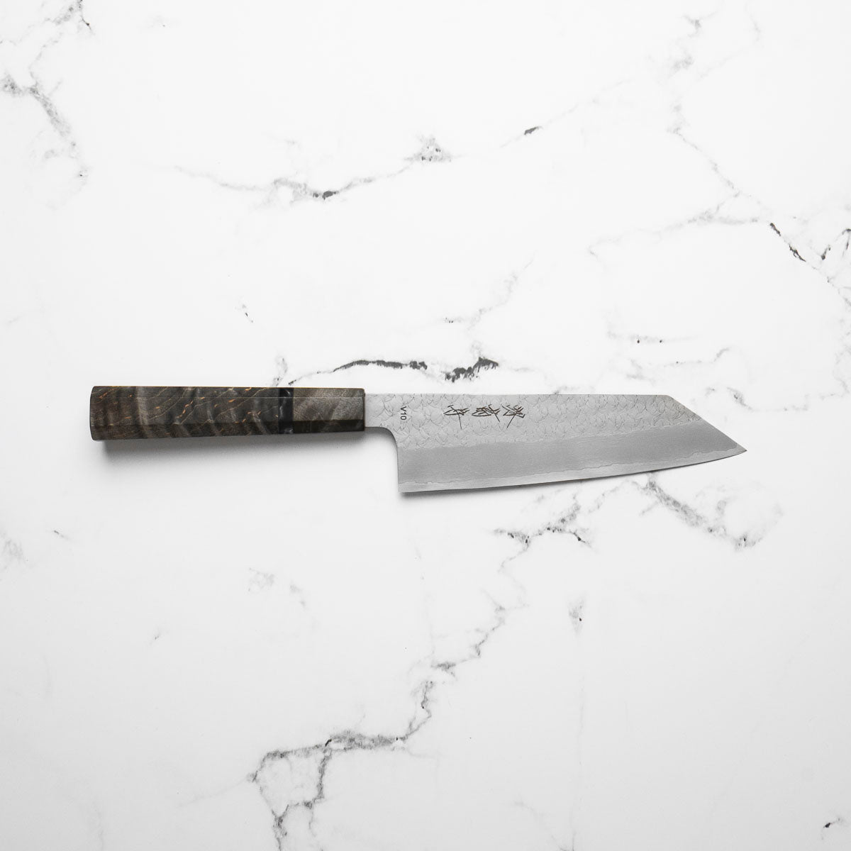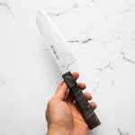 The Bunka knife, a versatile and traditional Japanese kitchen tool, features a distinctive, angular tip and a wide blade. It's designed for precision tasks like slicing, dicing, and chopping. Ideal for handling vegetables, meat, and fish, the Bunka is a multifunctional knife celebrated for its utility and unique aesthetic.