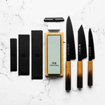 Sakai Takayuki Kurokage Burnt Oak 3 Knife Set - 1000/3000 Whetstone
