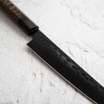 The Petty knife, a quintessential tool in Japanese cuisine, is a smaller utility knife used for precise, delicate tasks. Often considered a smaller sibling to the chef's knife, it excels in hand-held tasks like peeling, trimming, and intricate cutting. Its versatility makes it an essential for detailed culinary work.