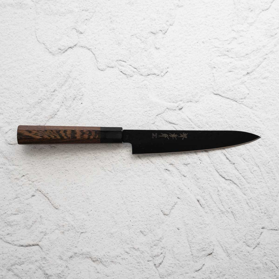 The Petty knife, a quintessential tool in Japanese cuisine, is a smaller utility knife used for precise, delicate tasks. Often considered a smaller sibling to the chef's knife, it excels in hand-held tasks like peeling, trimming, and intricate cutting. Its versatility makes it an essential for detailed culinary work.