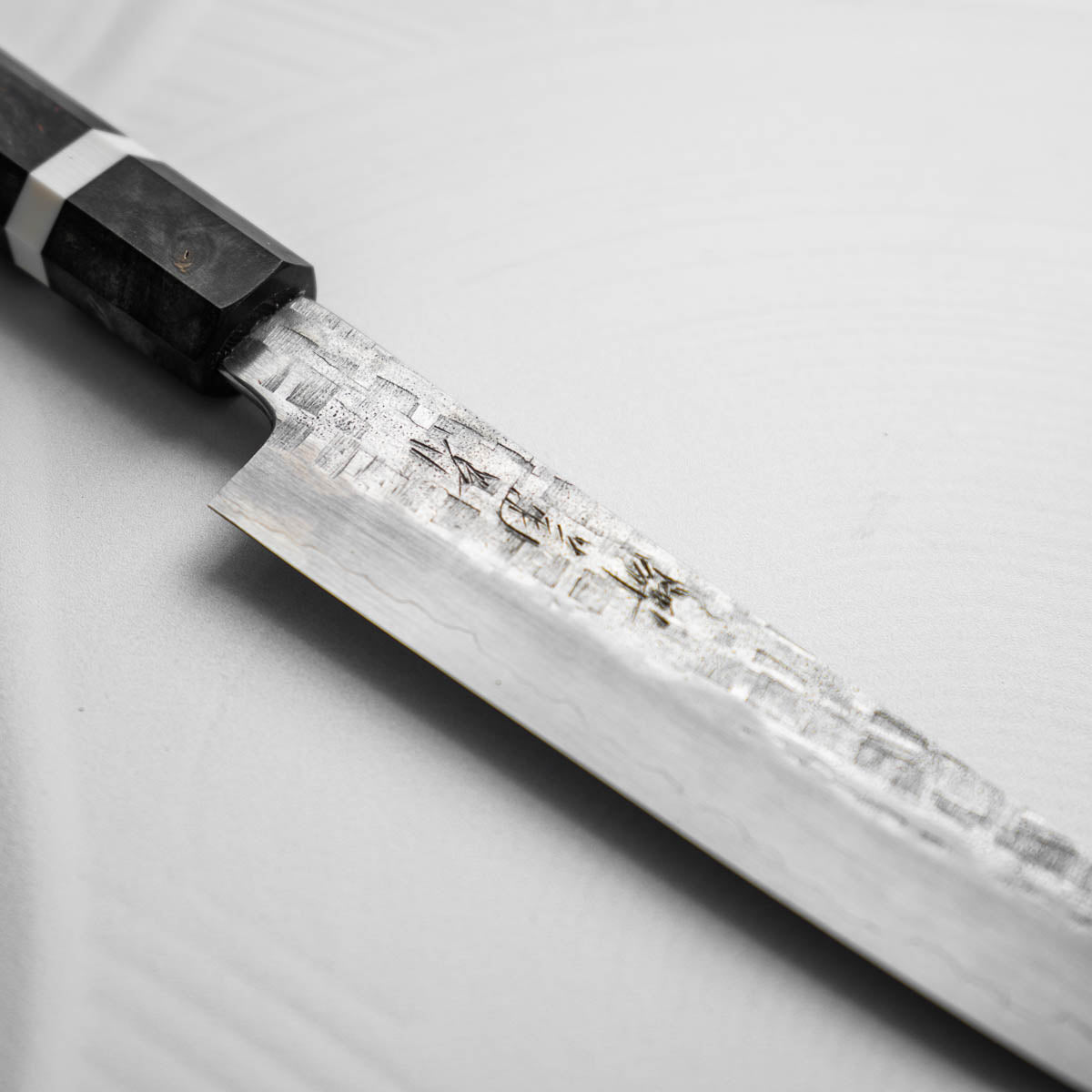 Having trained for nearly 16 years under the legendary blacksmith Kenichi Shiraki, Satoshi Nakagawa has quickly emerged as one of Sakai’s most respected and talented artisans. Nakagawa-san is highly regarded for his exceptional craftsmanship, versatility, and meticulous precision when working with a diverse range of knife steels.