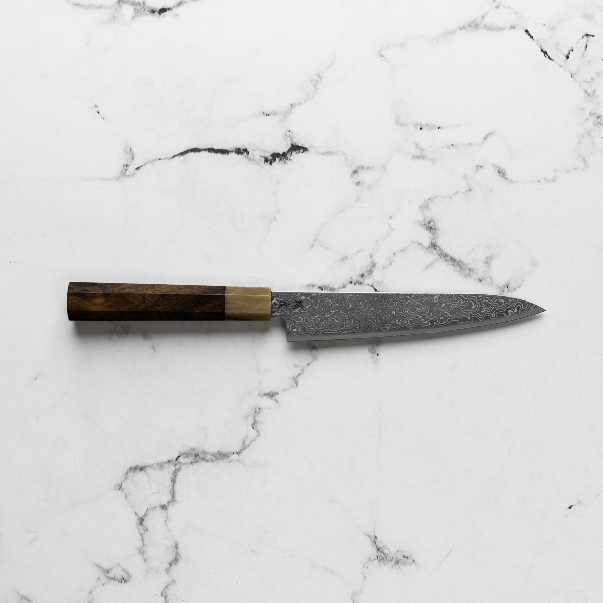 The Petty is your smaller knife for delicate work. Think mincing garlic, trimming up chicken thighs or meats, skinning fruit, and just about anything else the Bunka or Gyuto is too large for. It's an essential part of your knife range and we use ours almost daily.
