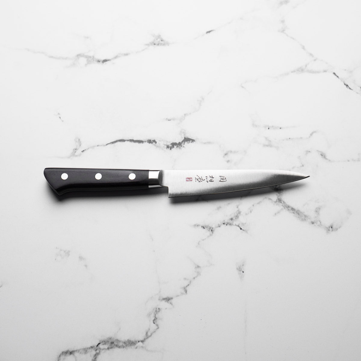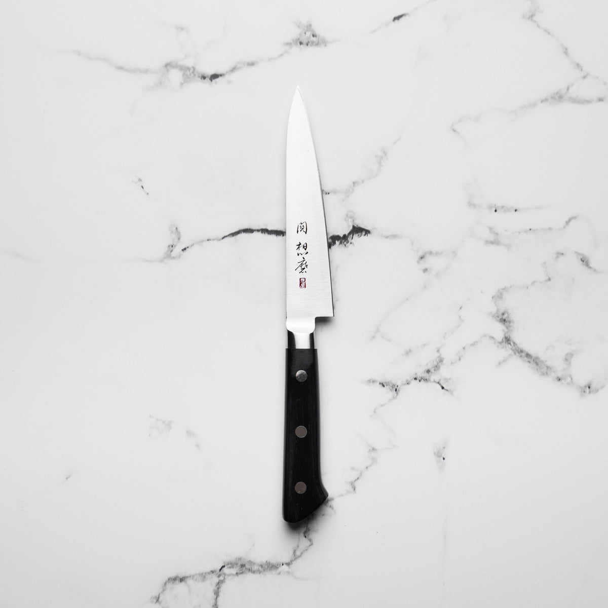 The Petty knife, a quintessential tool in Japanese cuisine, is a smaller utility knife used for precise, delicate tasks. Often considered a smaller sibling to the chef's knife, it excels in hand-held tasks like peeling, trimming, and intricate cutting. Its versatility makes it an essential for detailed culinary work.