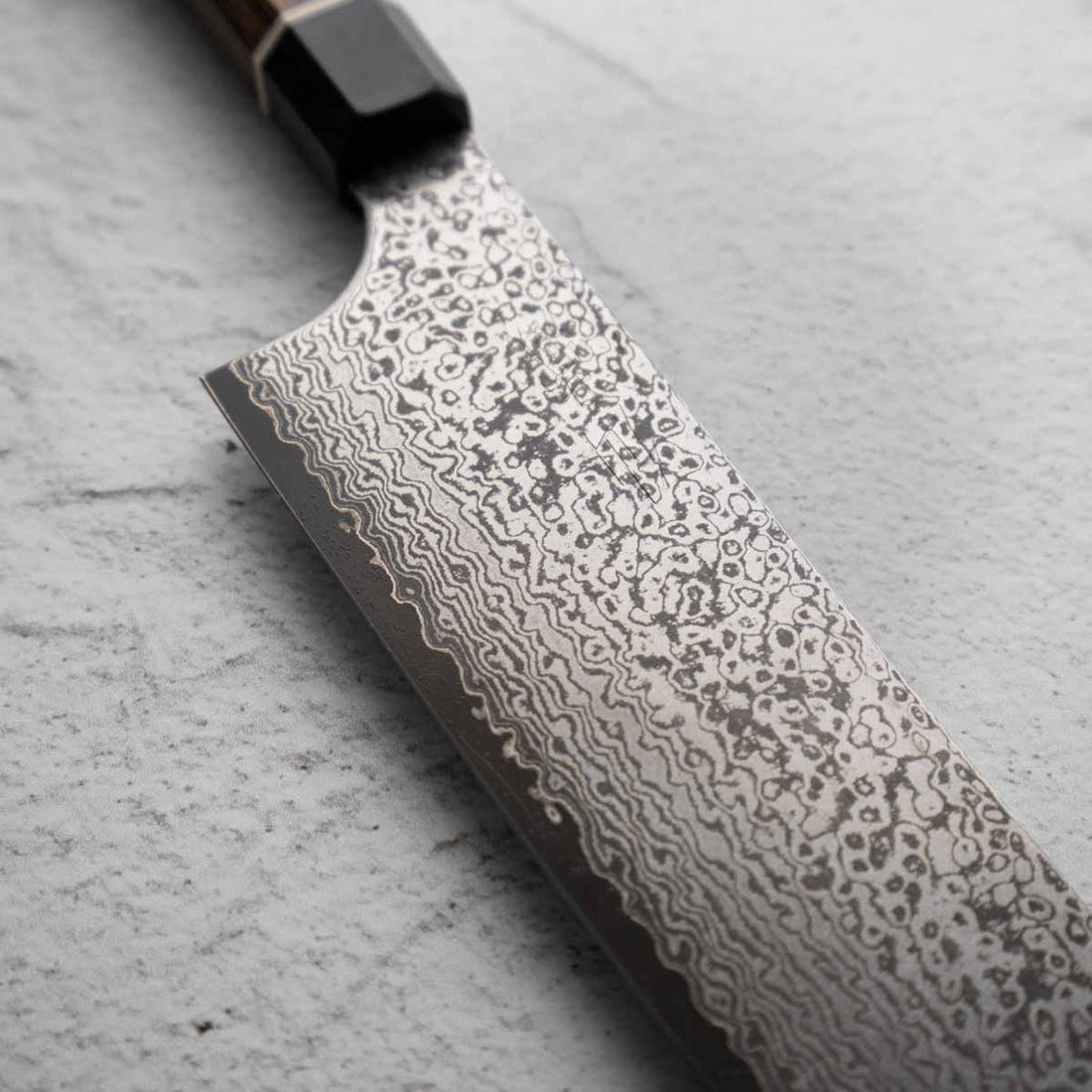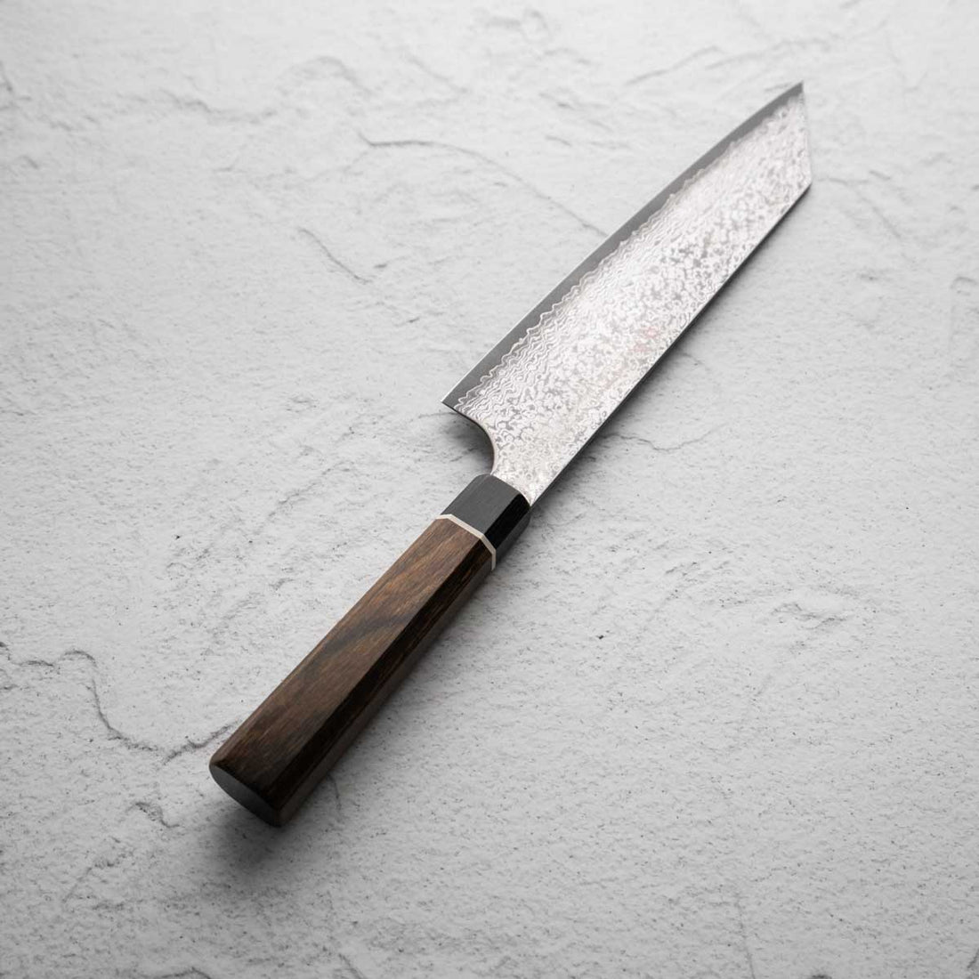 The Bunka knife, a versatile and traditional Japanese kitchen tool, features a distinctive, angular tip and a wide blade. It's designed for precision tasks like slicing, dicing, and chopping. Ideal for handling vegetables, meat, and fish, the Bunka is a multifunctional knife celebrated for its utility and unique aesthetic.