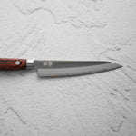 The Petty knife, a quintessential tool in Japanese cuisine, is a smaller utility knife used for precise, delicate tasks. Often considered a smaller sibling to the chef's knife, it excels in hand-held tasks like peeling, trimming, and intricate cutting. Its versatility makes it an essential for detailed culinary work.