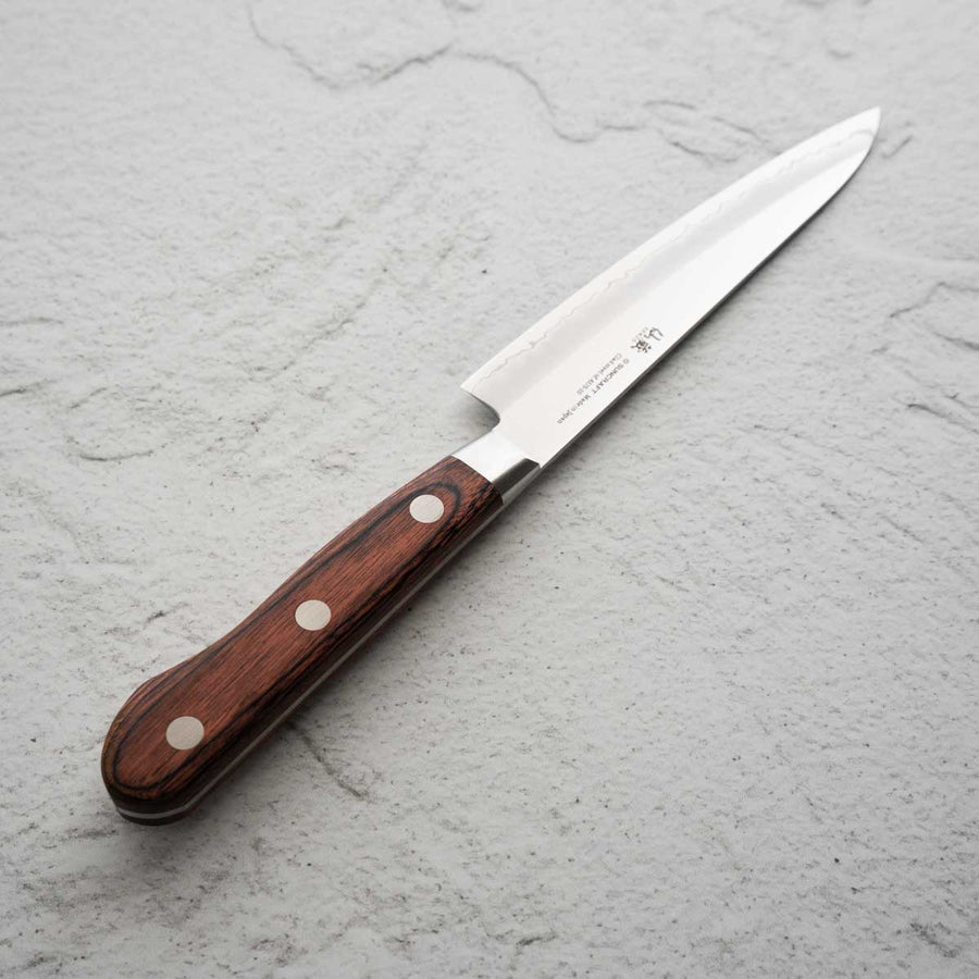 The Petty knife, a quintessential tool in Japanese cuisine, is a smaller utility knife used for precise, delicate tasks. Often considered a smaller sibling to the chef's knife, it excels in hand-held tasks like peeling, trimming, and intricate cutting. Its versatility makes it an essential for detailed culinary work.