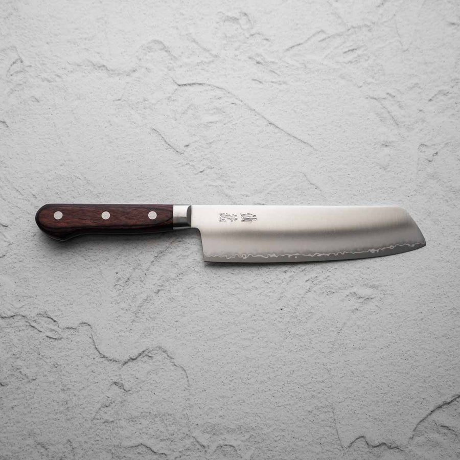 The Nakiri knife, revered in Japanese culinary traditions, is engineered for exceptional vegetable cutting. Featuring a distinct, straight-edged, and rectangular blade, it excels in creating uniform, precise cuts and aesthetic presentation. Its technical design ensures efficiency and precision, making it a valuable tool for both professional chefs and home cooks.