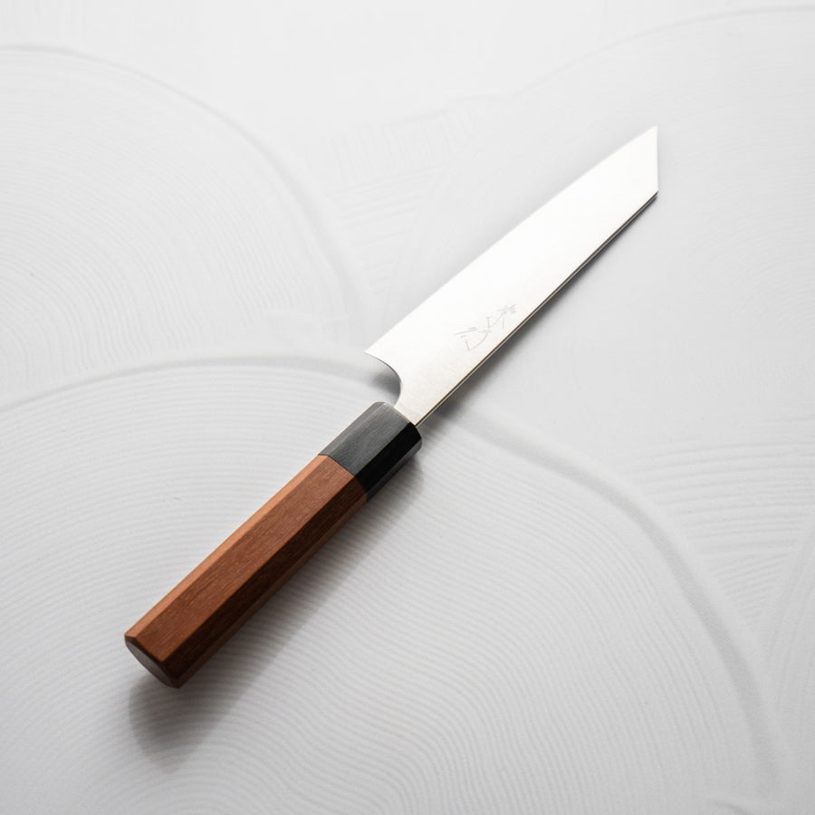 The Petty knife, a quintessential tool in Japanese cuisine, is a smaller utility knife used for precise, delicate tasks. Often considered a smaller sibling to the chef's knife, it excels in hand-held tasks like peeling, trimming, and intricate cutting. Its versatility makes it an essential for detailed culinary work.