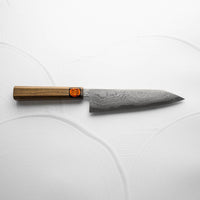 The Bunka knife, a versatile and traditional Japanese kitchen tool, features a distinctive, angular tip and a wide blade. It's designed for precision tasks like slicing, dicing, and chopping. Ideal for handling vegetables, meat, and fish, the Bunka is a multifunctional knife celebrated for its utility and unique aesthetic.