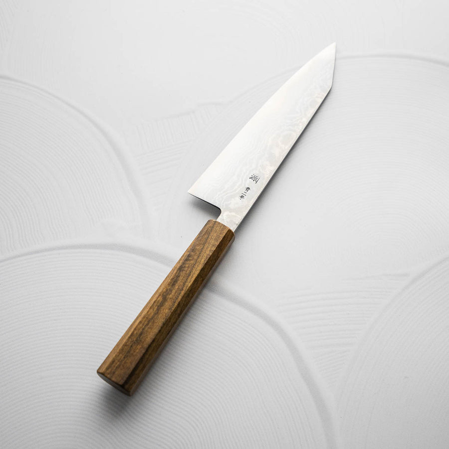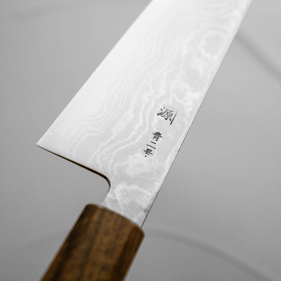 Tanaka honed his skills at the renowned Takefu Knife Village in Fukui Prefecture before establishing his own forge back in Miki. Widely regarded as one of Japan’s most skilled young artisans, he masterfully works with an extensive range of knifemaking steels—from traditional high-carbon (such as Aogami) to advanced powder stainless steels like R2/SG2.