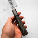 Japanese SG2, also known as R2 steel, is a high-end, powdered metallurgy stainless steel and one of the finest knife-making steels available in Japan. It is a favourite of many for its exceptional hardness and edge retention. Its fine, uniform grain structure enables razor-sharp edges, all the while holding an edge for much longer than Carbon steel knives, without needing to be concerned about rust appearing.
