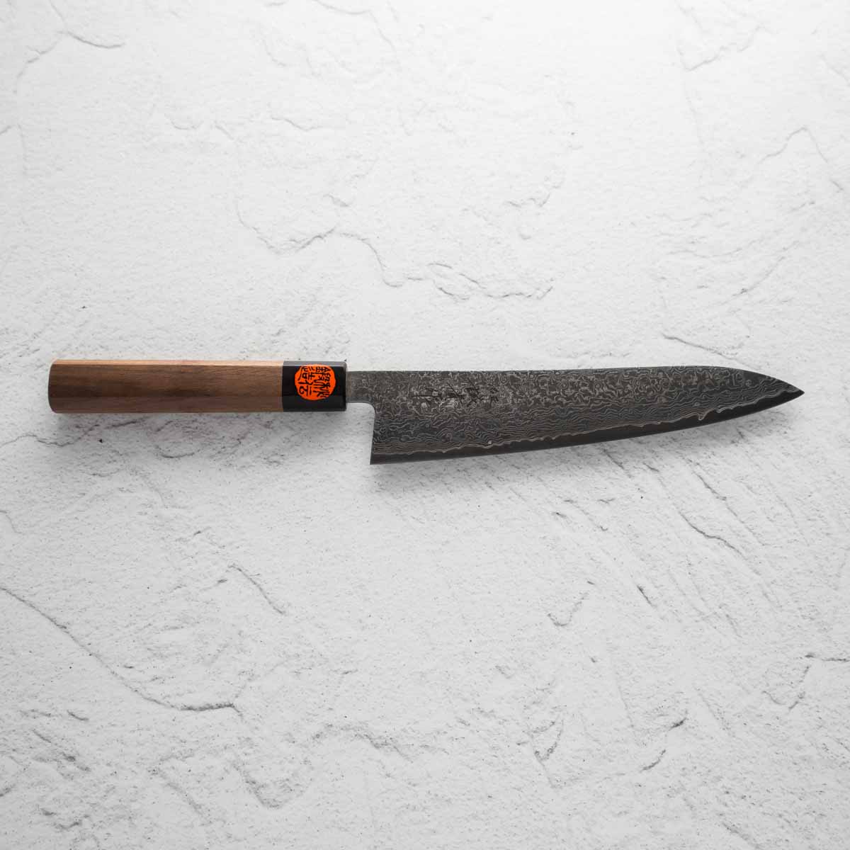Tanaka honed his skills at the renowned Takefu Knife Village in Fukui Prefecture before establishing his own forge back in Miki. Widely regarded as one of Japan’s most skilled young artisans, he masterfully works with an extensive range of knifemaking steels—from traditional high-carbon (such as Aogami) to advanced powder stainless steels like R2/SG2.