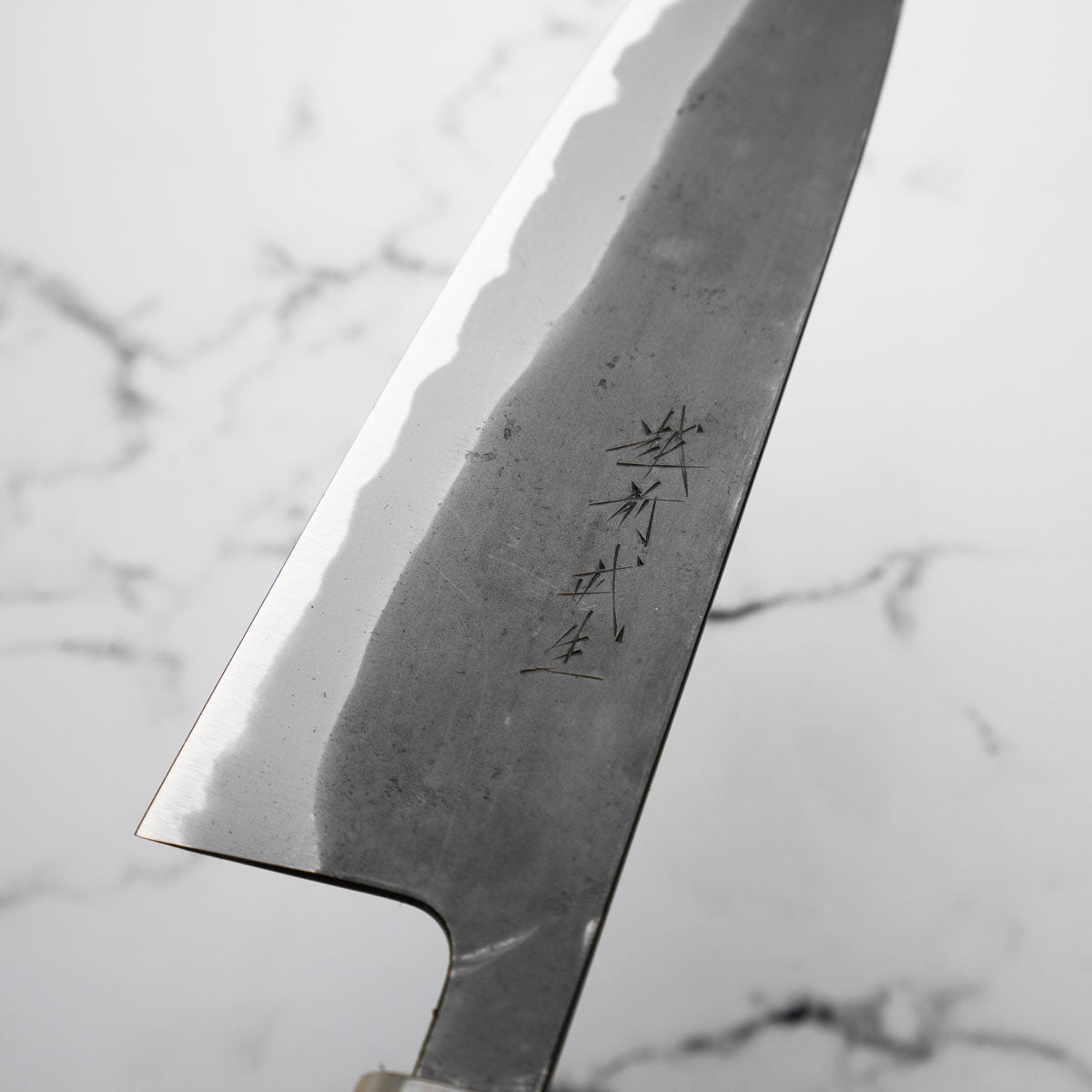This knife is made from a high-carbon steel and as such, will require a little more care than a regular off-the-shelf knife. It must be dried shortly after use, as prolonged exposure to moisture can cause rust spots to appear. A very light coat of oil during storage also helps to prevent rust spots. A patina (colouration and seasoning of the steel) will occur with use.