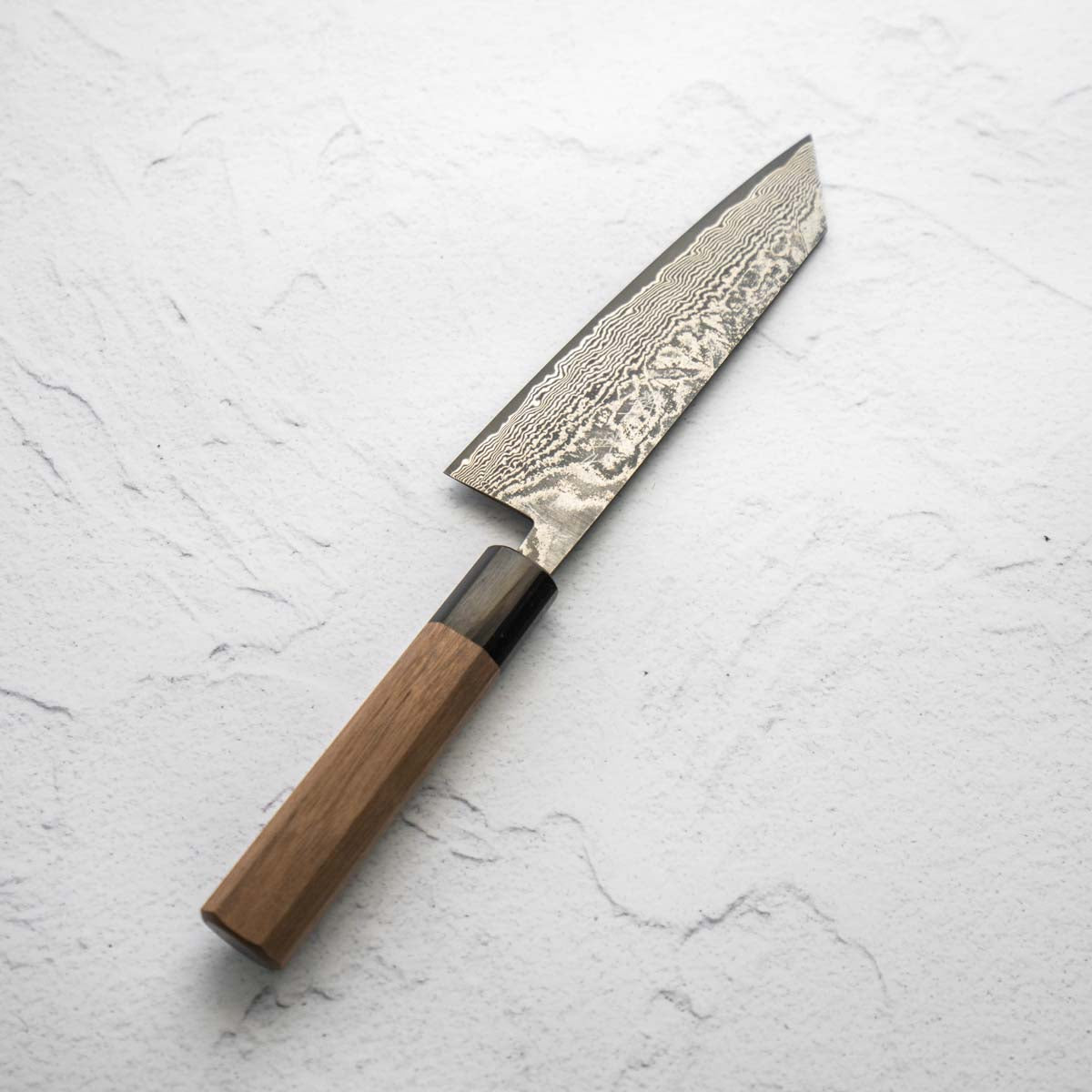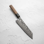 The Bunka knife, a versatile and traditional Japanese kitchen tool, features a distinctive, angular tip and a wide blade. It's designed for precision tasks like slicing, dicing, and chopping. Ideal for handling vegetables, meat, and fish, the Bunka is a multifunctional knife celebrated for its utility and unique aesthetic.