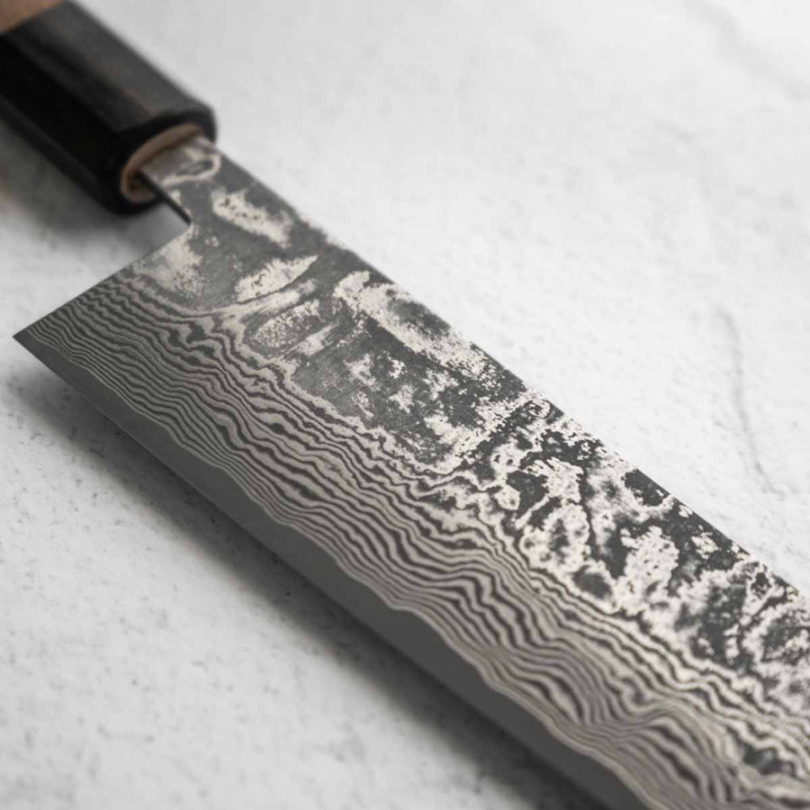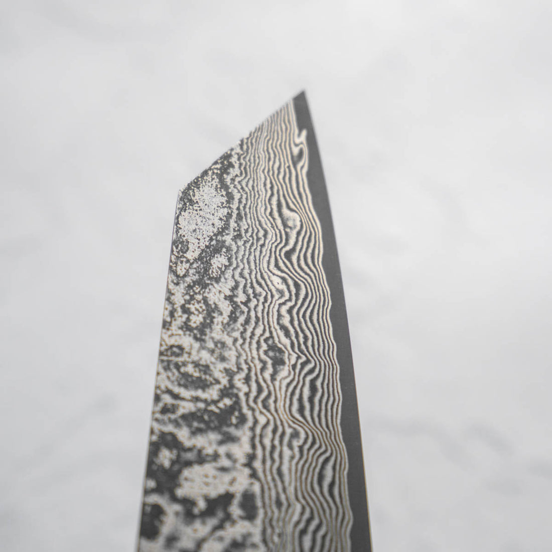 Japanese SG2, also known as R2 steel, is a high-end, powdered metallurgy stainless steel and one of the finest knife-making steels available in Japan. It is a favourite of many for its exceptional hardness and edge retention. Its fine, uniform grain structure enables razor-sharp edges, all the while holding an edge for much longer than Carbon steel knives, without needing to be concerned about rust appearing.