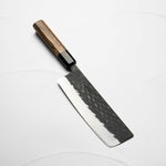 The Nakiri knife, revered in Japanese culinary traditions, is engineered for exceptional vegetable cutting. Featuring a distinct, straight-edged, and rectangular blade, it excels in creating uniform, precise cuts and aesthetic presentation. Its technical design ensures efficiency and precision, making it a valuable tool for both professional chefs and home cooks.
