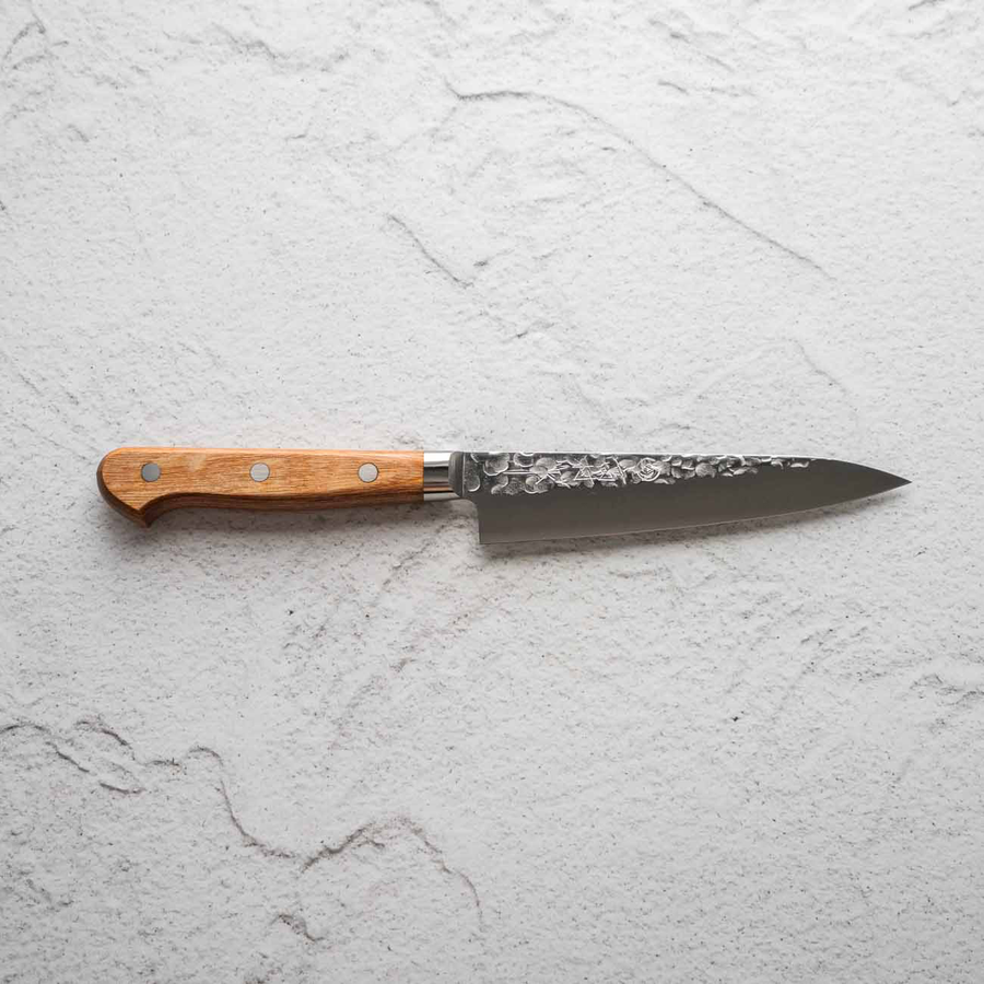 The Petty knife, a quintessential tool in Japanese cuisine, is a smaller utility knife used for precise, delicate tasks. Often considered a smaller sibling to the chef's knife, it excels in hand-held tasks like peeling, trimming, and intricate cutting. Its versatility makes it an essential for detailed culinary work.