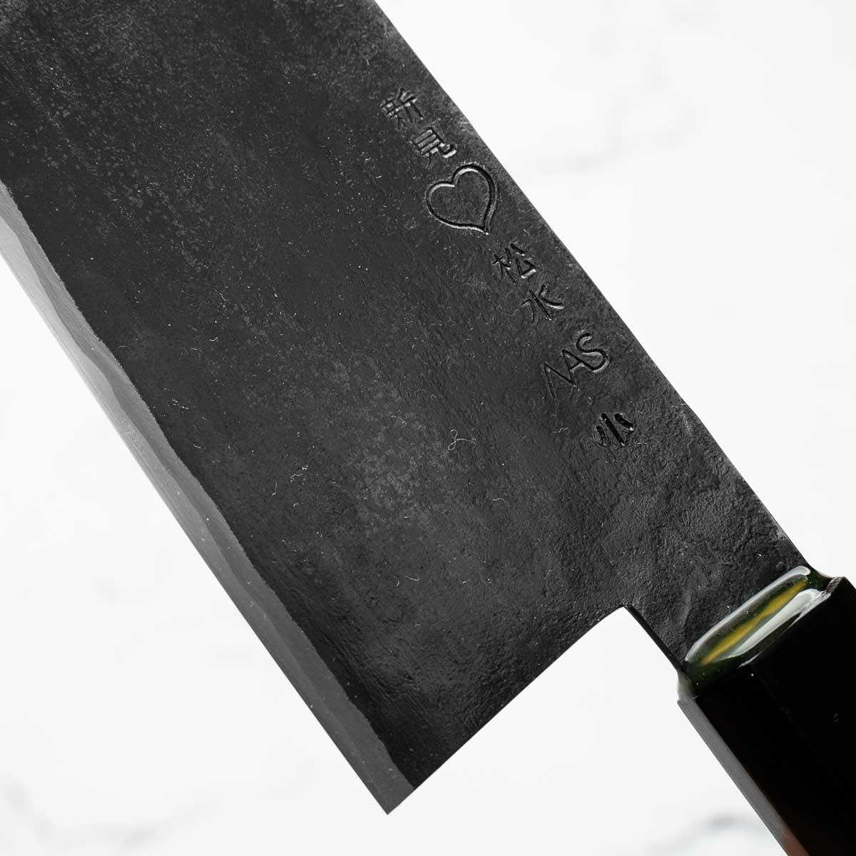 Takeda’s knives are instantly recognizable — tall, kurouchi-finished blades, incredibly lightweight, and ground to an ultra-low bevel that delivers outstanding cutting performance. Often forged from Aogami Super Steel (NAS), these knives are known for holding a razor-sharp edge while being remarkably easy to maintain.