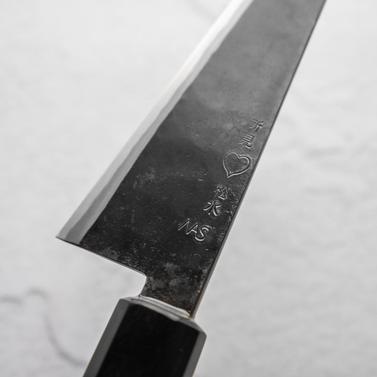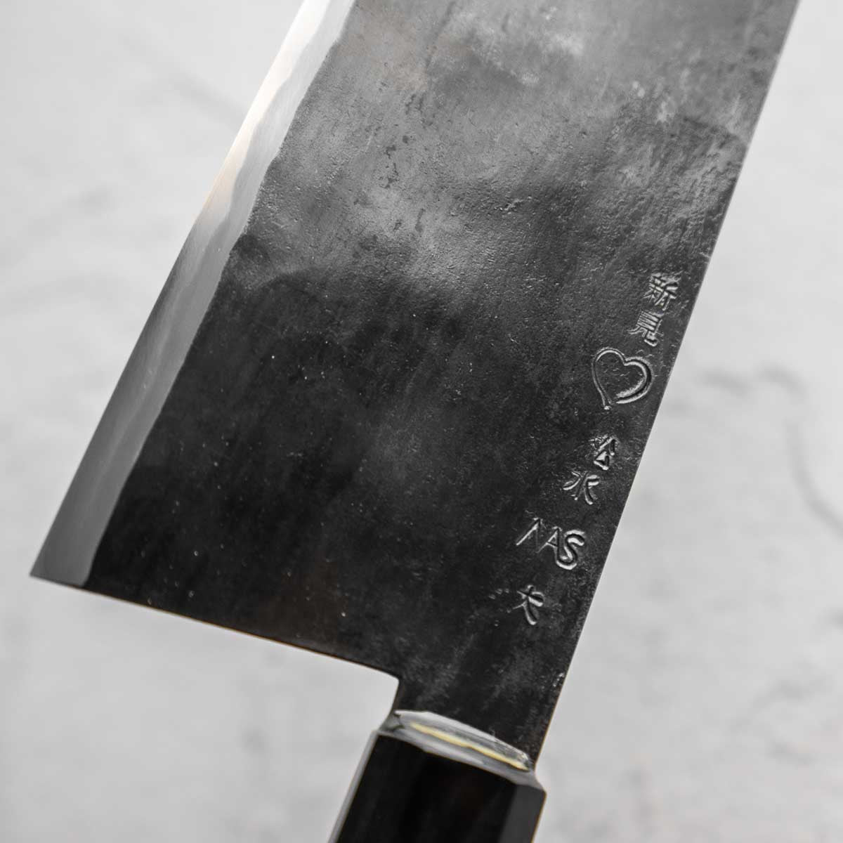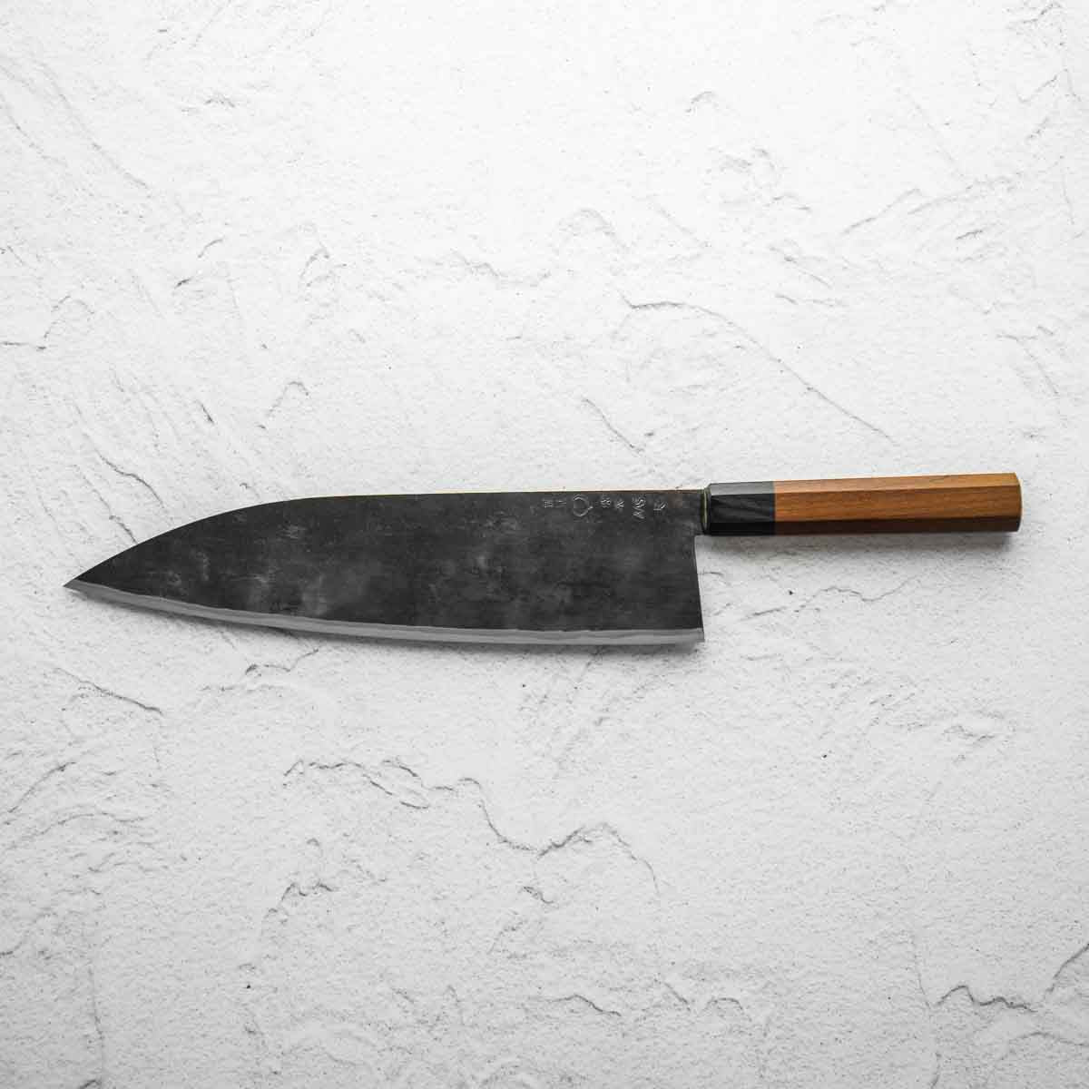 Takeda’s knives are instantly recognizable — tall, kurouchi-finished blades, incredibly lightweight, and ground to an ultra-low bevel that delivers outstanding cutting performance. Often forged from Aogami Super Steel (NAS), these knives are known for holding a razor-sharp edge while being remarkably easy to maintain.