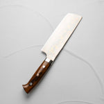 The Nakiri knife, revered in Japanese culinary traditions, is engineered for exceptional vegetable cutting. Featuring a distinct, straight-edged, and rectangular blade, it excels in creating uniform, precise cuts and aesthetic presentation. Its technical design ensures efficiency and precision, making it a valuable tool for both professional chefs and home cooks.
