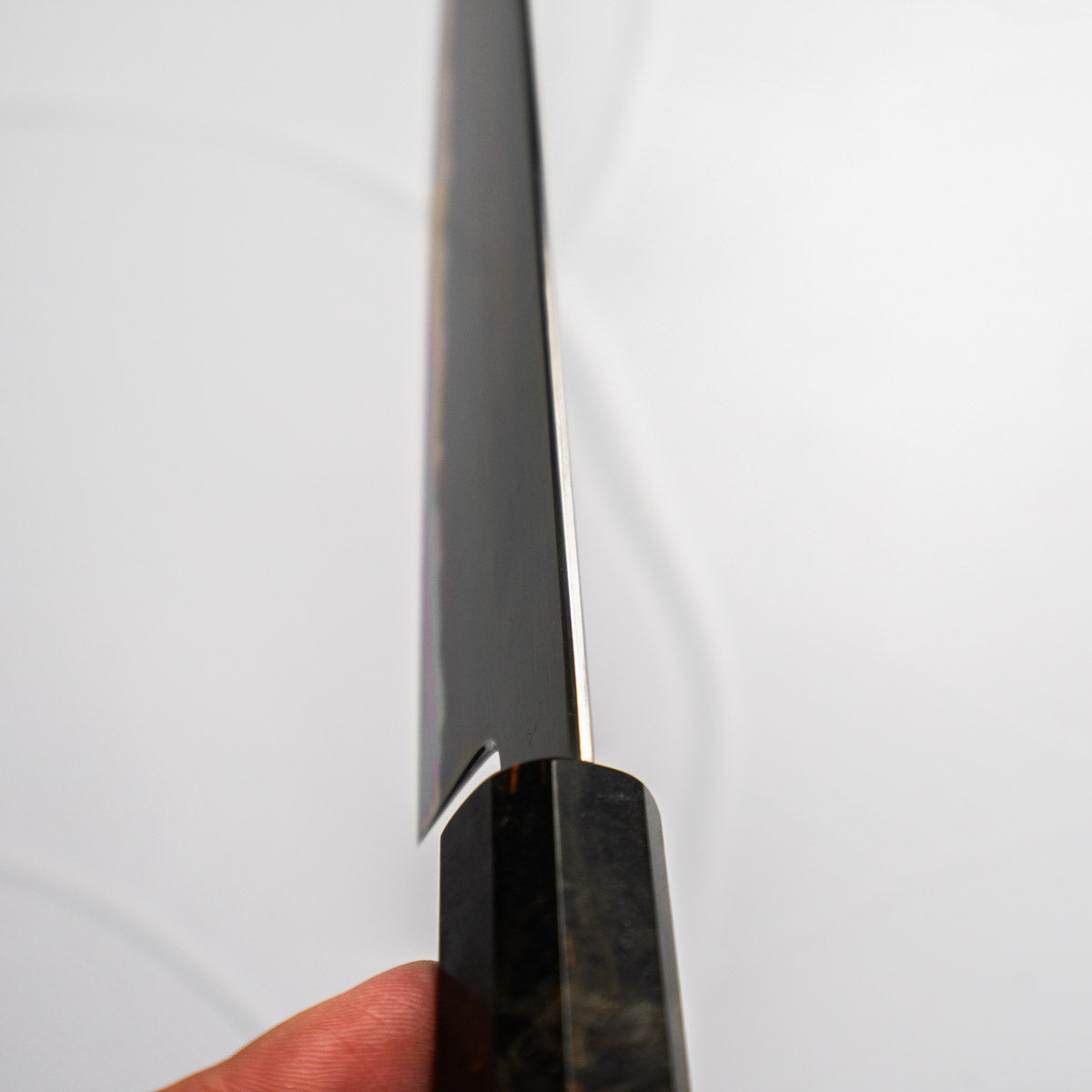 Naohito Myojin is a fast-rising sharpener working out of Kochi prefecture. His work is now in such high demand that long wait times are now the norm. He is the sharpener behind the Tetsujin line and the 'Fujiyama' line by Konosuke.