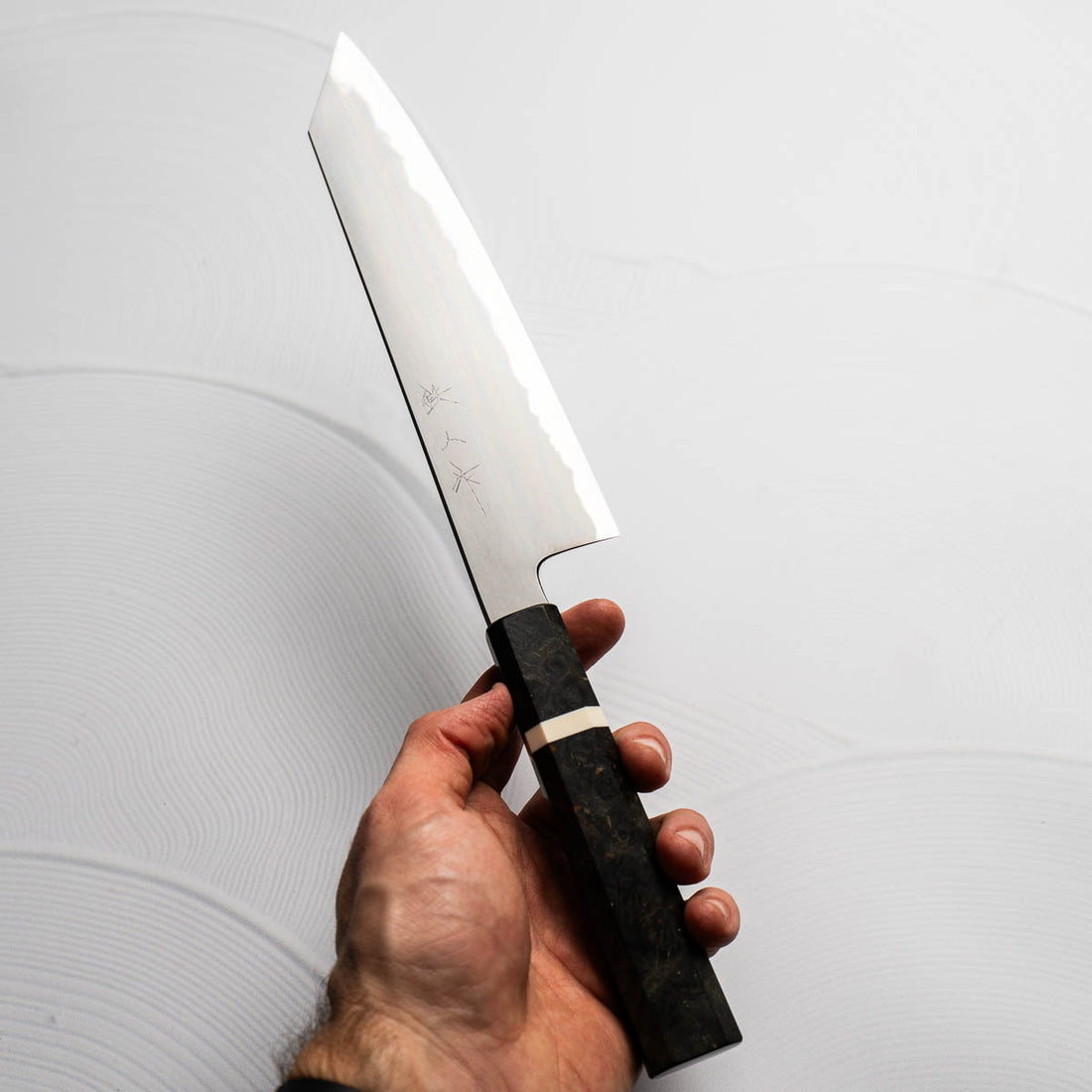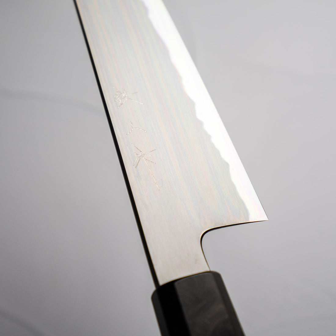 Naohito Myojin is a fast-rising sharpener working out of Kochi prefecture. His work is now in such high demand that long wait times are now the norm. He is the sharpener behind the Tetsujin line and the 'Fujiyama' line by Konosuke.