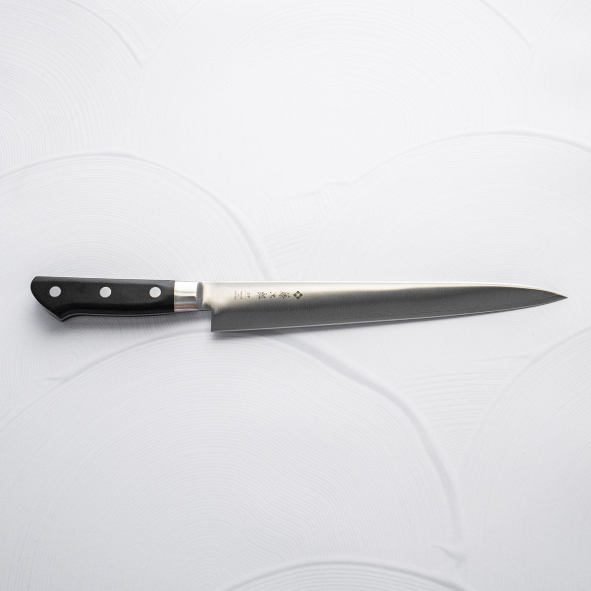 The Sujihiki knife, a traditional Japanese slicer, is designed for carving and fileting. With its long, narrow blade, typically ranging from 240mm to 330mm, it excels in creating clean, smooth cuts through meat and fish. Its length ensures long, uninterrupted strokes, making it perfect for precise slicing tasks.