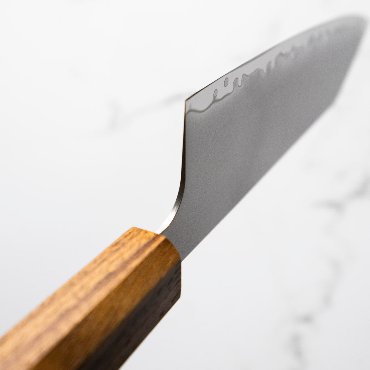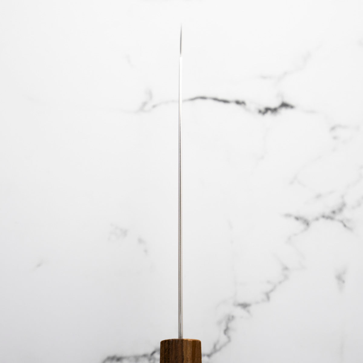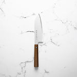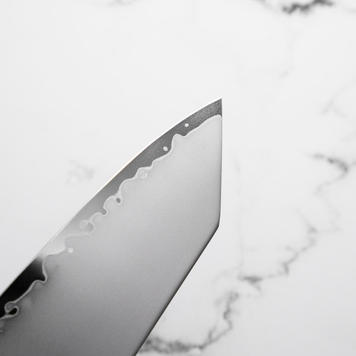 The Bunka knife, a versatile and traditional Japanese kitchen tool, features a distinctive, angular tip and a wide blade. It's designed for precision tasks like slicing, dicing, and chopping. Ideal for handling vegetables, meat, and fish, the Bunka is a multifunctional knife celebrated for its utility and unique aesthetic.