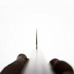 Japanese SG2, also known as R2 steel, is a high-end, powdered metallurgy stainless steel and one of the finest knife-making steels available in Japan. It is a favourite of many for its exceptional hardness and edge retention. It's fine, uniform grain structure enables razor-sharp edges, all the while holding an edge for much longer than Carbon steel knives, without needing to be concerned about rust appearing.