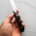 The Petty knife, a quintessential tool in Japanese cuisine, is a smaller utility knife used for precise, delicate tasks. Often considered a smaller sibling to the chef's knife, it excels in hand-held tasks like peeling, trimming, and intricate cutting. Its versatility makes it an essential for detailed culinary work.
