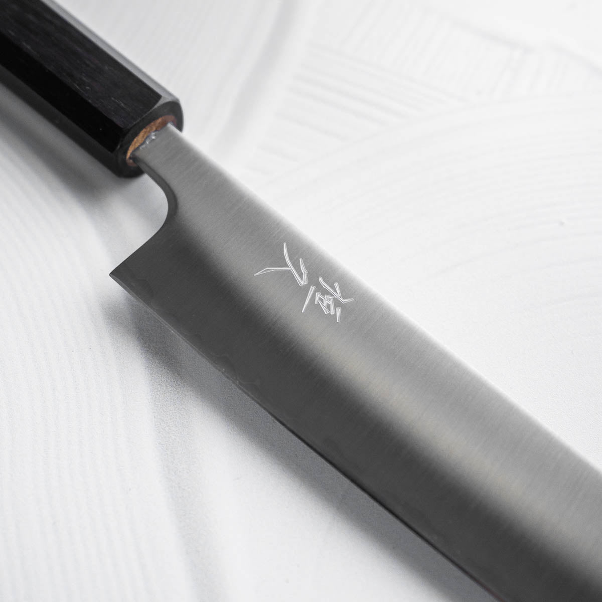 The Sujihiki knife, a traditional Japanese slicer, is designed for carving and fileting. With its long, narrow blade, typically ranging from 240mm to 330mm, it excels in creating clean, smooth cuts through meat and fish. Its length ensures long, uninterrupted strokes, making it perfect for precise slicing tasks.