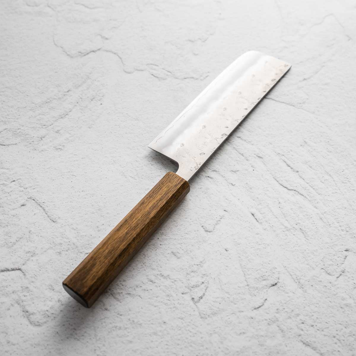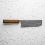 The Nakiri knife, revered in Japanese culinary traditions, is engineered for exceptional vegetable cutting. Featuring a distinct, straight-edged, and rectangular blade, it excels in creating uniform, precise cuts and aesthetic presentation. Its technical design ensures efficiency and precision, making it a valuable tool for both professional chefs and home cooks.