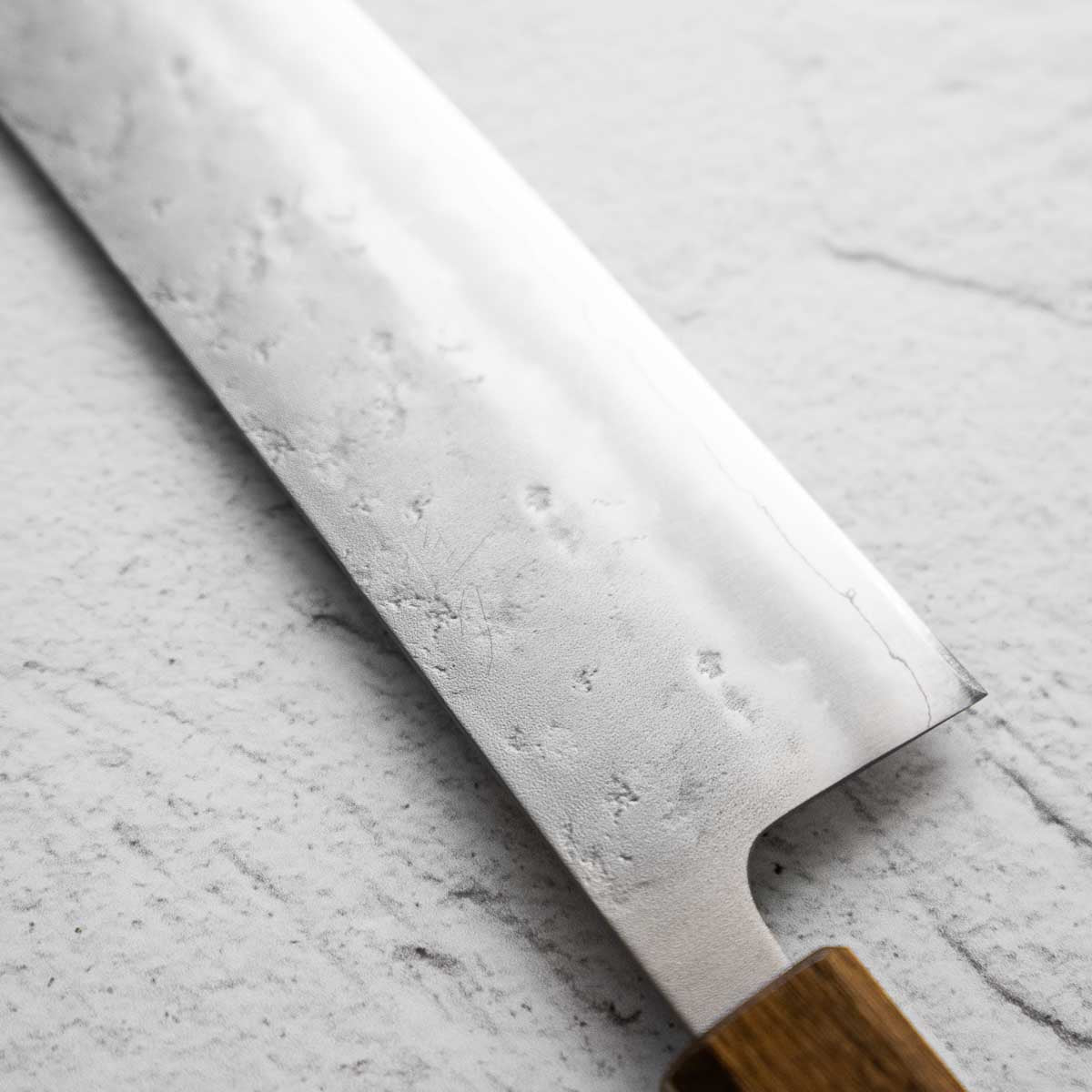 Japanese Ginsan steel, also known as Silver-3 or G3, is an underrated high-grade semi-stainless steel loved by many for being in the ‘goldilocks zone’ of knife steels. It holds a very respectable edge, but is effortless to sharpen. It is considered the semi-stainless version of White 2. It is the knife steel of choice for many home cooks and professional chefs alike.